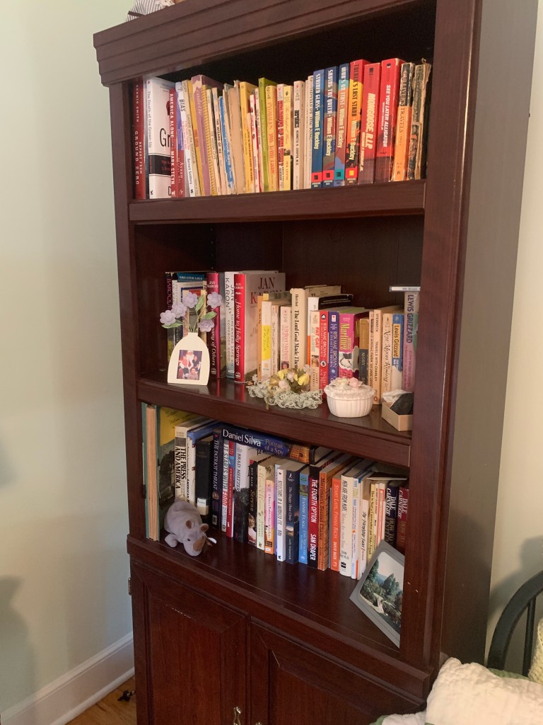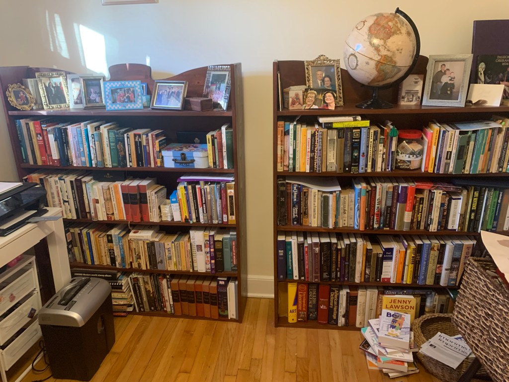 In the 90s my sweet Daddy built me two enormous bookcases to house all my books. I’m sure he thought the bookcases would hold them all. Hah.