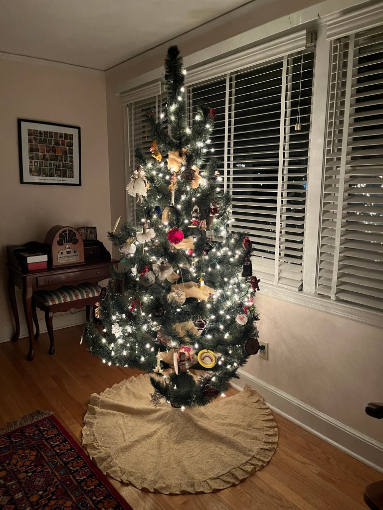 Next up is Bedside Companion for Book Lovers: An Anthology of Literary Delights for Every Night of the Year. I’ve read just one item in it, for the day I received the book. Then, I decided to keep it by my bedside for 2024. Each page is numbered by the day of the year – January 1, January 2, and so forth. The night’s selection might be a poem, single paragraph, or a full page. I can’t wait to delve into it each night before bed, last thing before I go to sleep. With this gift I moved the floor lamp behind my bed to function as a reading light.