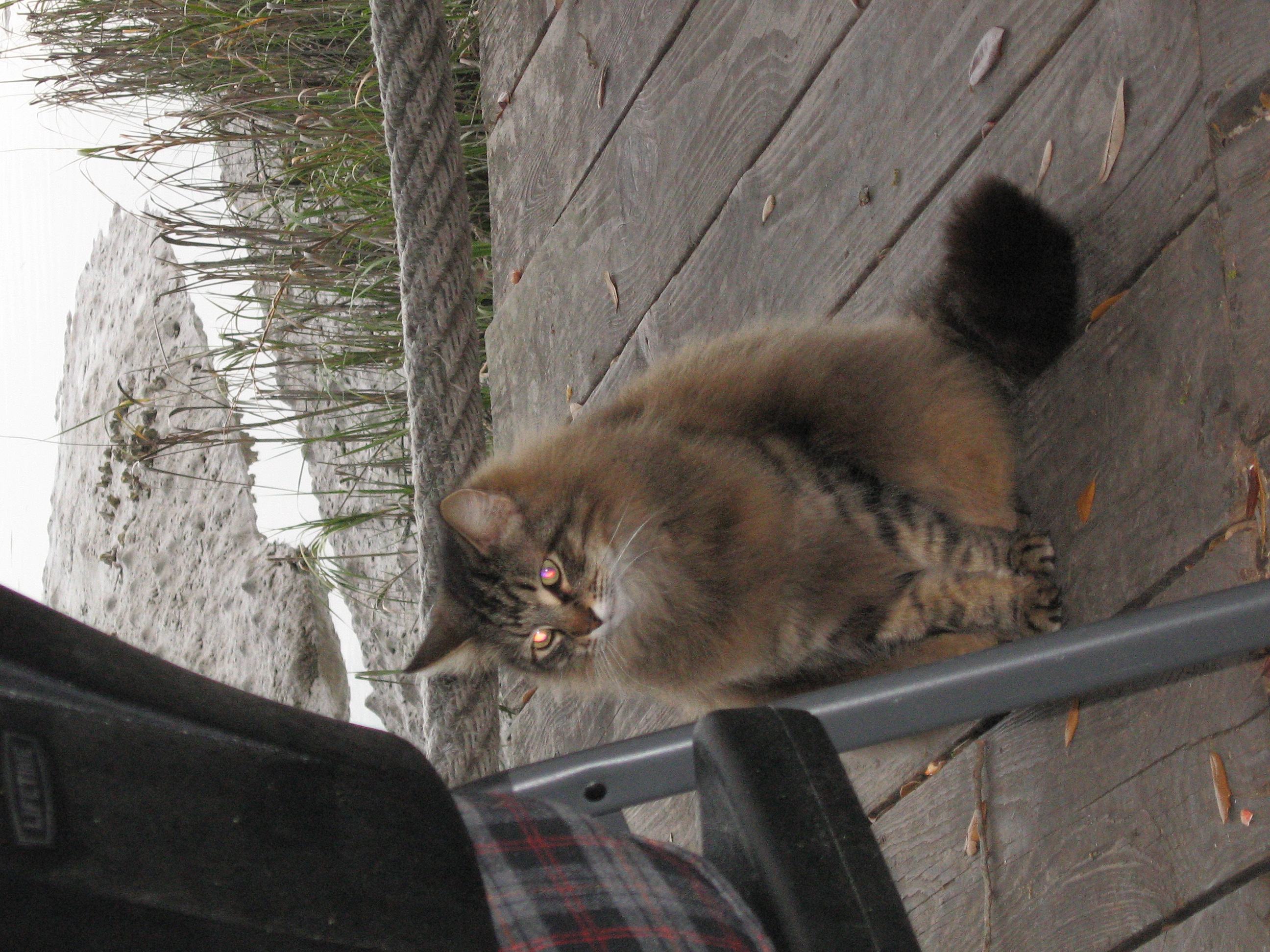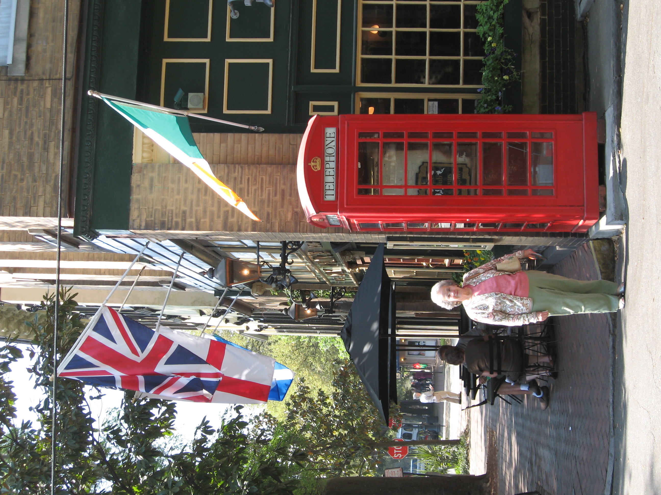The Six Pence Pub on Bull Street imported its own red British telephone booth for even more character. Mom is happy to be on the trip.The view from the Crab Shacks outdoor deck, Tybee IslandQuite a few of the Crab Shack patrons have fed this big kitty on the outdoor deck. Hes waiting patiently for more.