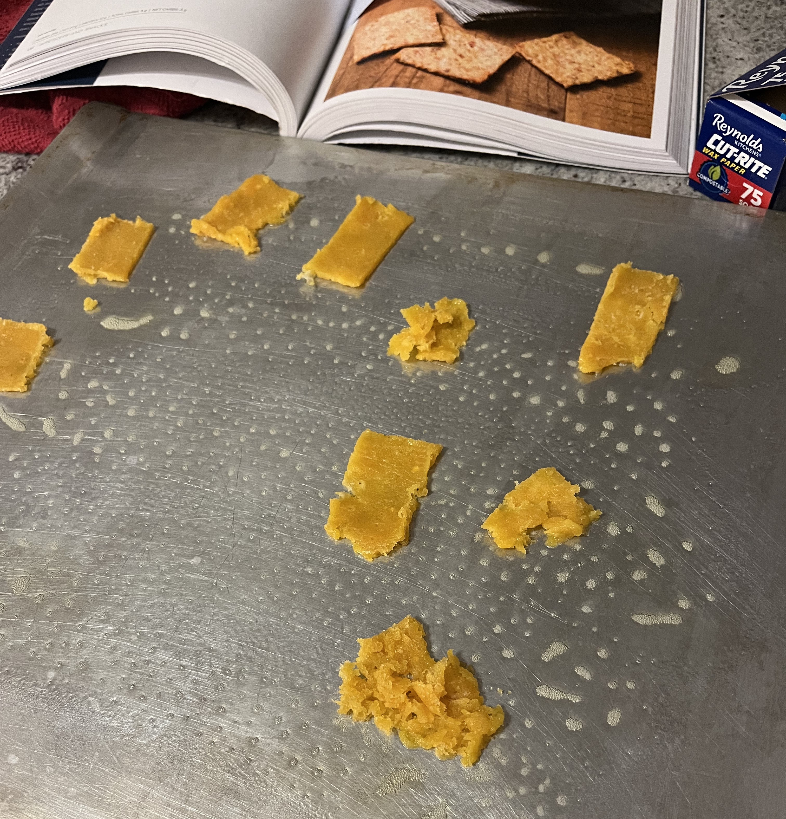 Sometimes, you just have an itch that fat or protein won’t scratch. Another fat bomb won’t do. And eating yet another devilled egg doesn’t appeal either. Sometimes, you just want a cracker. To the rescue – once again, my new Bible of Keto cooking, Suzanne Ryan’s “Simply Keto” cookbook. (Seriously – go buy this book!) I found her Keto crackers recipe – and it offers two ways of making these wonderful snacks. I choose the cheese cracker option. They don’t even need dip. They’re delicious all by themselves. See below for my photo essay of my first attempt to make these crackers.