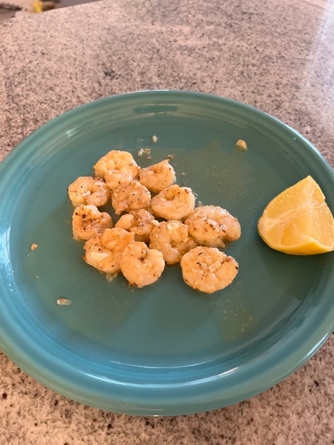 That’s when my Atkins Food Tracker almost gave me a heart attack today. I was merely dining on shrimp I sauteed in garlic and butter, with lots of seasonings and lemon when I realized I needed to add it to the tracker. I looked up Sauteed Shrimp – and found that there was no such item. I then looked at “Cooked Shrimp” and thought – well, that’s basic enough. Turns out that generic listing contained 14.77 net carbs for 5 oz! (About 12 shrimp.) I about fell off my kitchen stool. How on earth were those people cooking shrimp – in a casserole laden with crackers and noodles? Then I decided to look at Shrimp Scampi. Ah – only 1.59 carbs for the 12. Whew. That leaves me plenty of room for my supper out tonight.